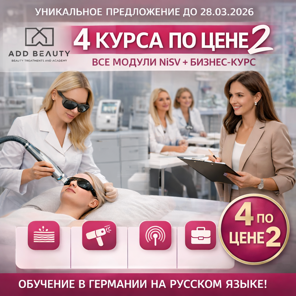 Если вы планируете работать в аппаратной косметологии в Германии, без официальной квалификации по NiSV Вы далеко не уедете. Поэтому мы собрали пакет, который закрывает правовую, бизнес и профессиональную сторону вопроса — без воды и лишних модулей.